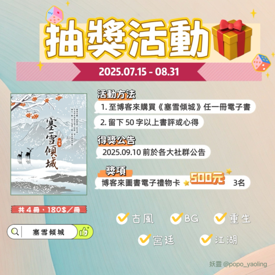 1. 至博客來購買《塞雪傾城》任一冊電子書